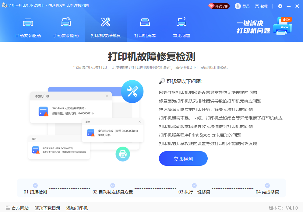 各类打印机的驱动都有,直接就能一键修复各种打印机驱动问题,新手也能快速修复。